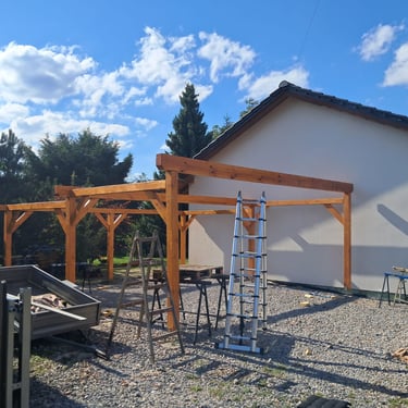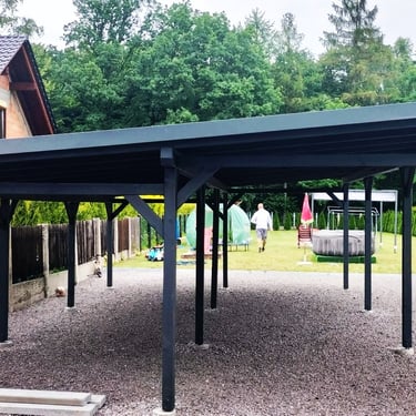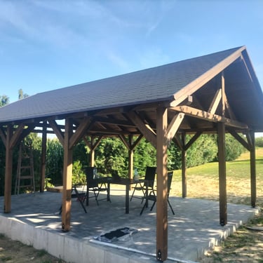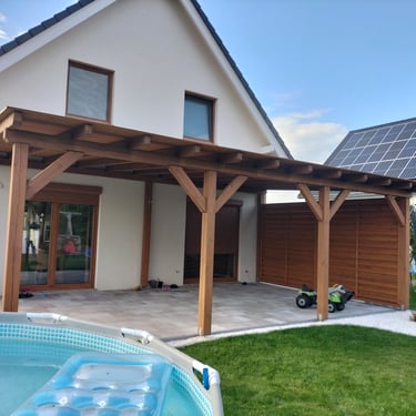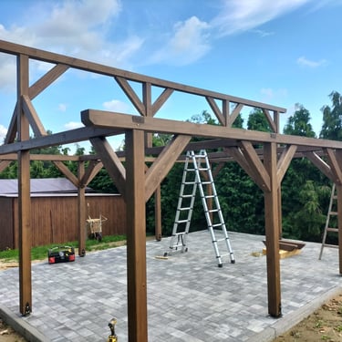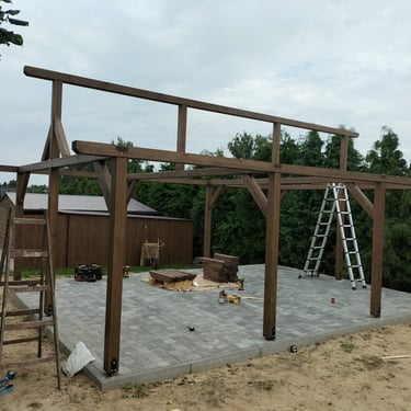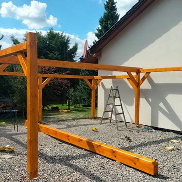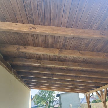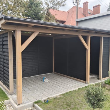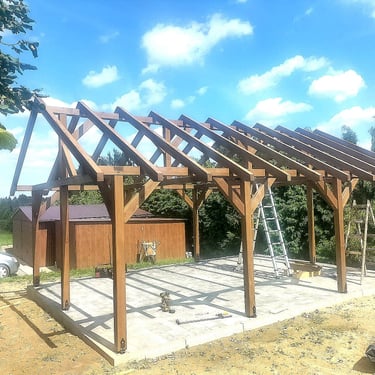 Konstrukcja prosta, ale szczegóły decydują o trwałości! Podbitka, spadki dachu, kotwy, pokrycie i impregnacja! Jak nie zrobisz dobrze, to Ci wiatr zdmuchnie lub deszcz zaleje!
